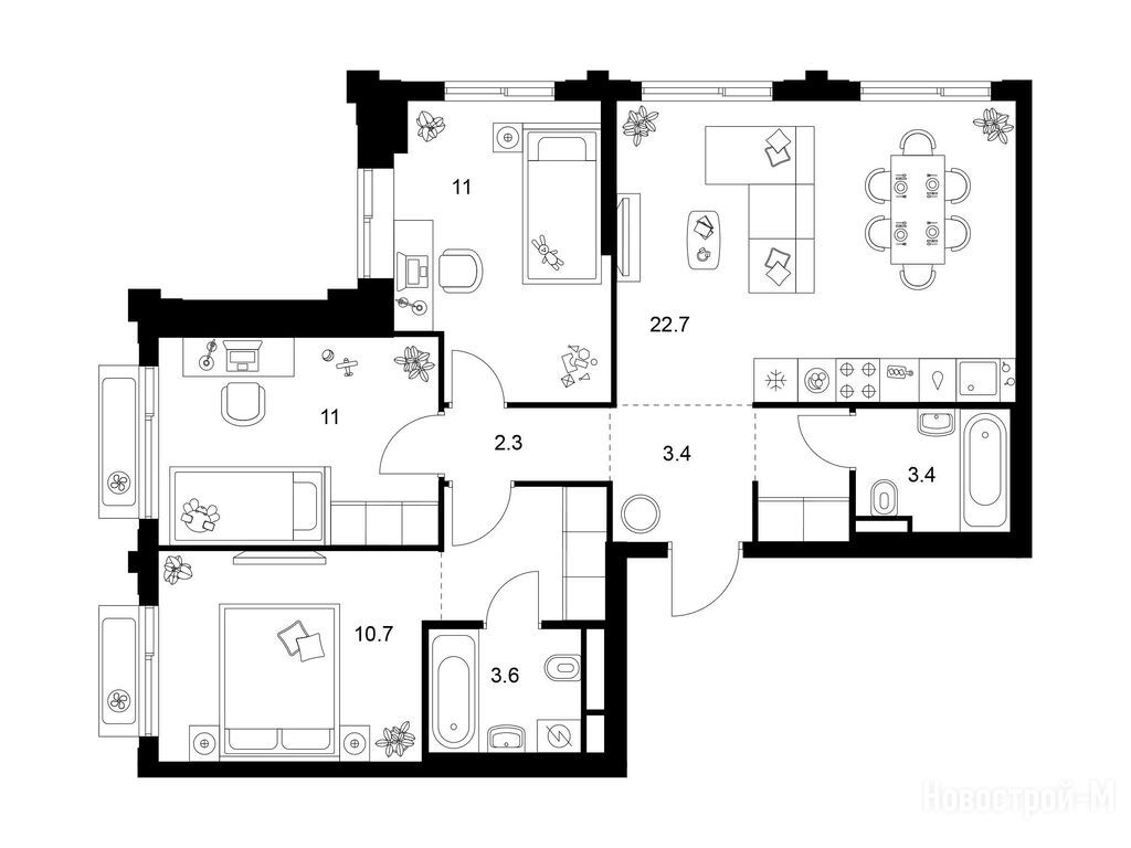 два детских сада и подземный паркинг - это были основные моменты в пользу этого проекта, поэтому взяли трешку, думаю, что не прогадали