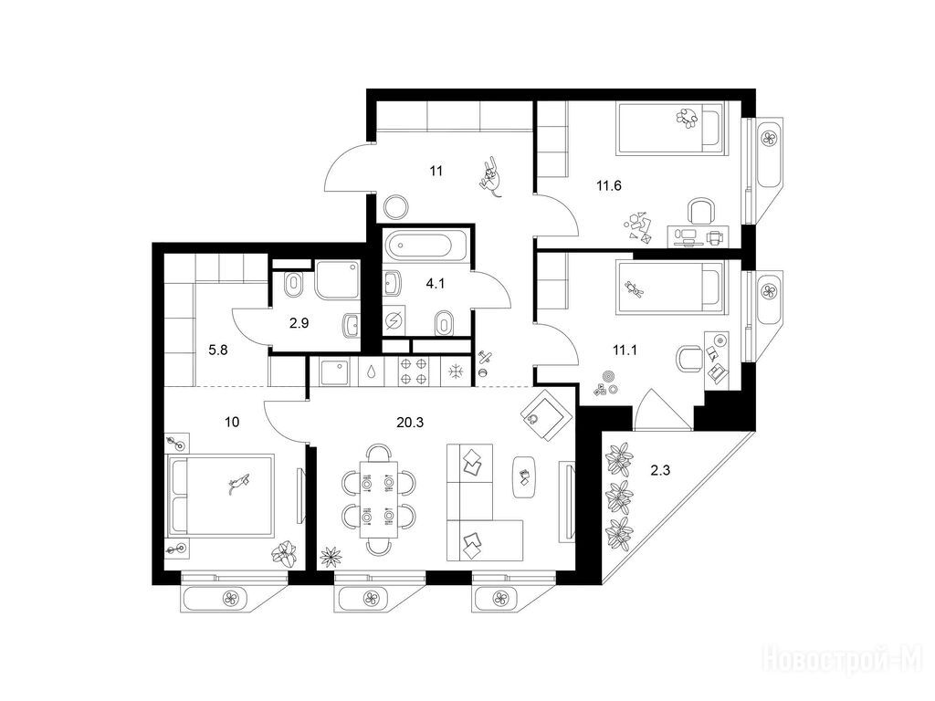два детских сада и подземный паркинг - это были основные моменты в пользу этого проекта, поэтому взяли трешку, думаю, что не прогадали