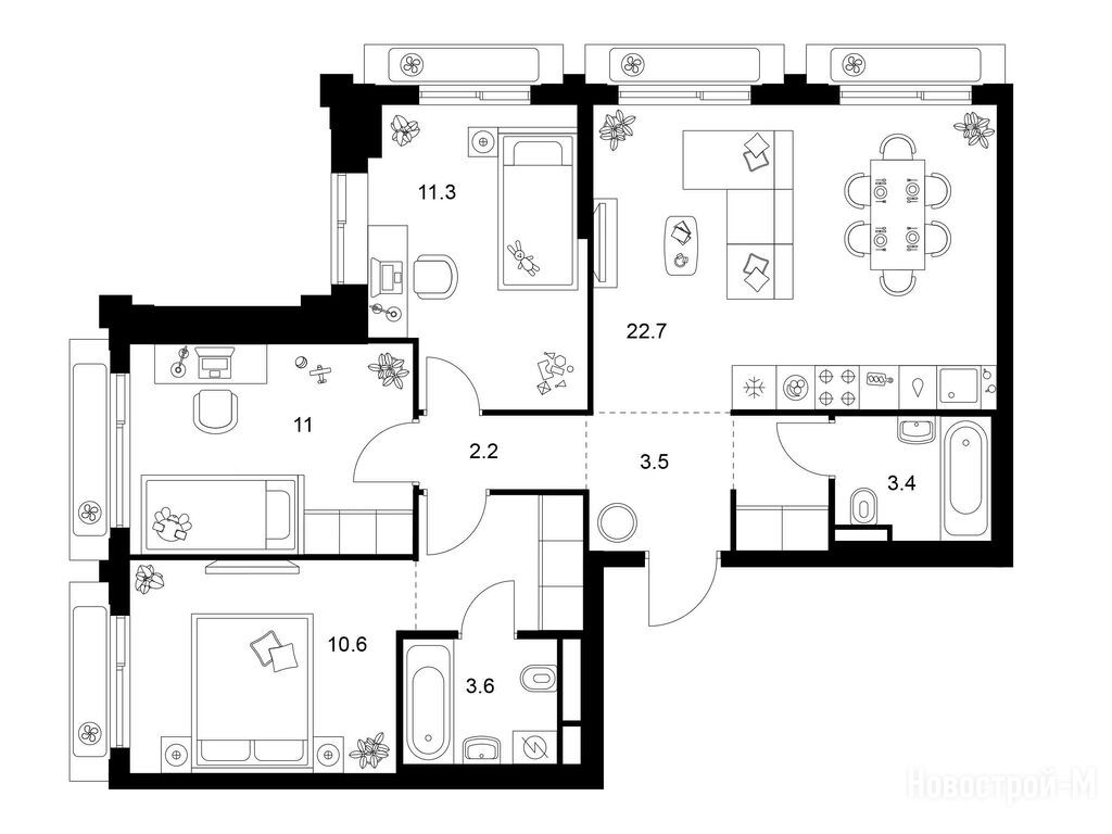 два детских сада и подземный паркинг - это были основные моменты в пользу этого проекта, поэтому взяли трешку, думаю, что не прогадали