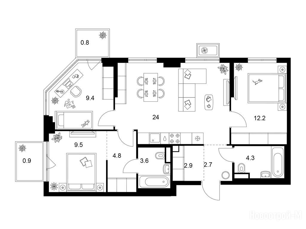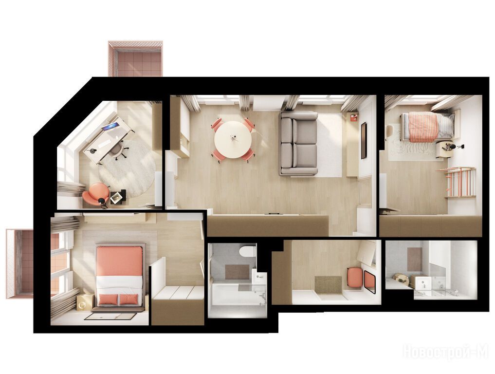 Взяли двушку. Прикольно, что уже на 59 квадратов идут 2 с/у. Сначала смутило, что без балкона, но вообще вместо них кладовые делают. Реально удобно, не надо квартиру хламом нагружать. Поэтому в планах еще кладовку покупать.