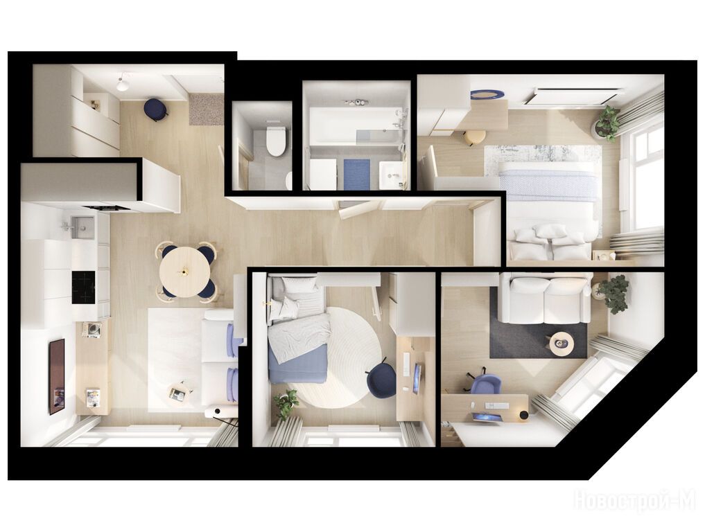 Взяли двушку. Прикольно, что уже на 59 квадратов идут 2 с/у. Сначала смутило, что без балкона, но вообще вместо них кладовые делают. Реально удобно, не надо квартиру хламом нагружать. Поэтому в планах еще кладовку покупать.