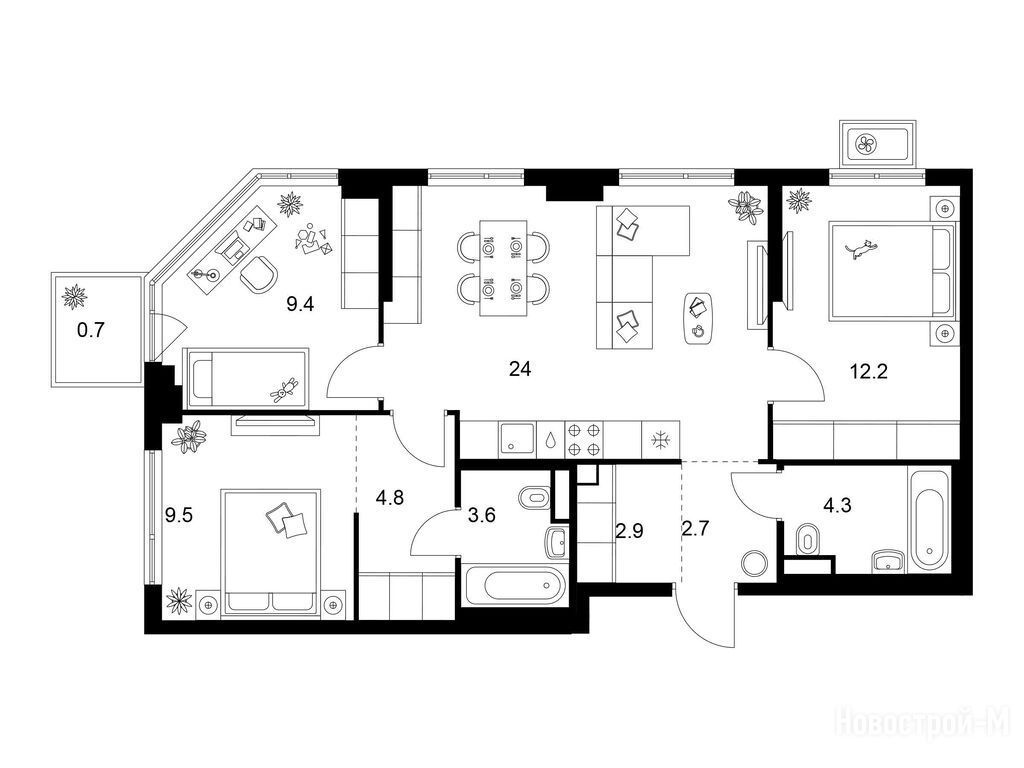 Взяли двушку. Прикольно, что уже на 59 квадратов идут 2 с/у. Сначала смутило, что без балкона, но вообще вместо них кладовые делают. Реально удобно, не надо квартиру хламом нагружать. Поэтому в планах еще кладовку покупать.