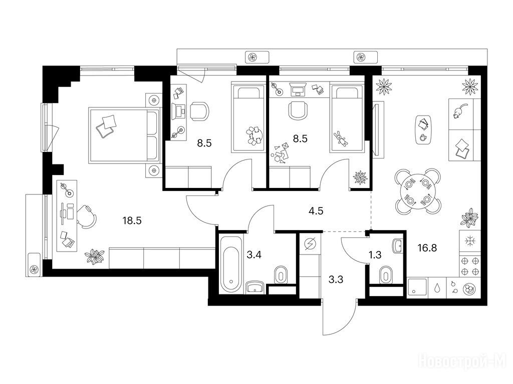 Взяли двушку. Прикольно, что уже на 59 квадратов идут 2 с/у. Сначала смутило, что без балкона, но вообще вместо них кладовые делают. Реально удобно, не надо квартиру хламом нагружать. Поэтому в планах еще кладовку покупать.