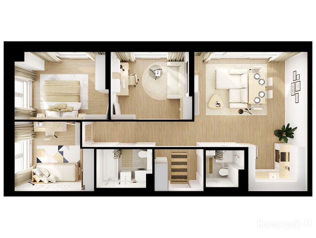 Взяли двушку. Прикольно, что уже на 59 квадратов идут 2 с/у. Сначала смутило, что без балкона, но вообще вместо них кладовые делают. Реально удобно, не надо квартиру хламом нагружать. Поэтому в планах еще кладовку покупать.