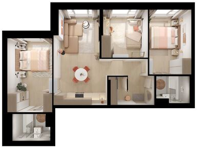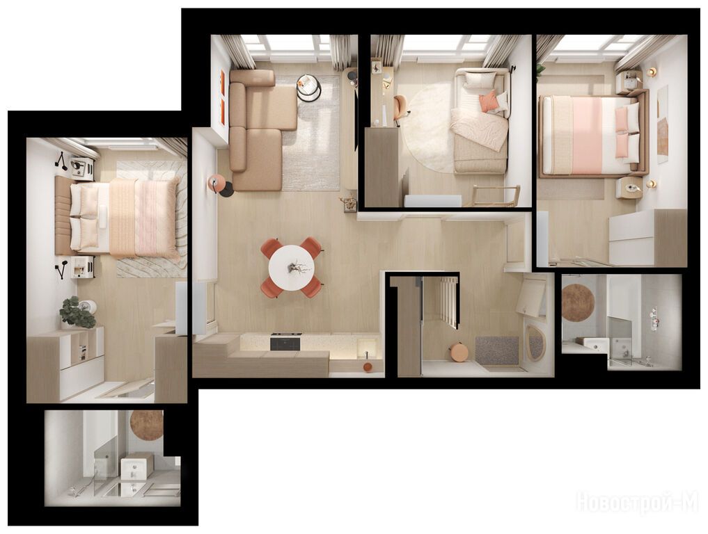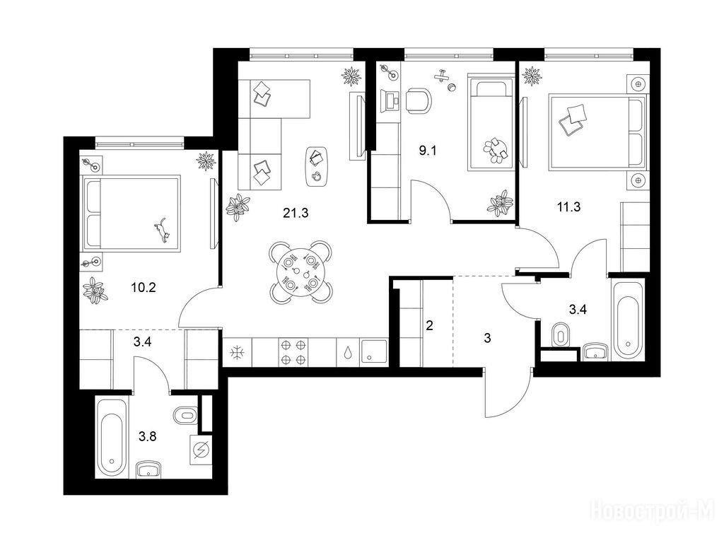 Взяли двушку. Прикольно, что уже на 59 квадратов идут 2 с/у. Сначала смутило, что без балкона, но вообще вместо них кладовые делают. Реально удобно, не надо квартиру хламом нагружать. Поэтому в планах еще кладовку покупать.