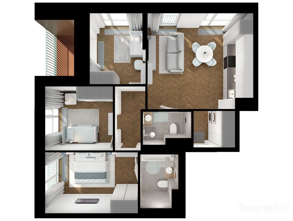 Взяли двушку. Прикольно, что уже на 59 квадратов идут 2 с/у. Сначала смутило, что без балкона, но вообще вместо них кладовые делают. Реально удобно, не надо квартиру хламом нагружать. Поэтому в планах еще кладовку покупать.
