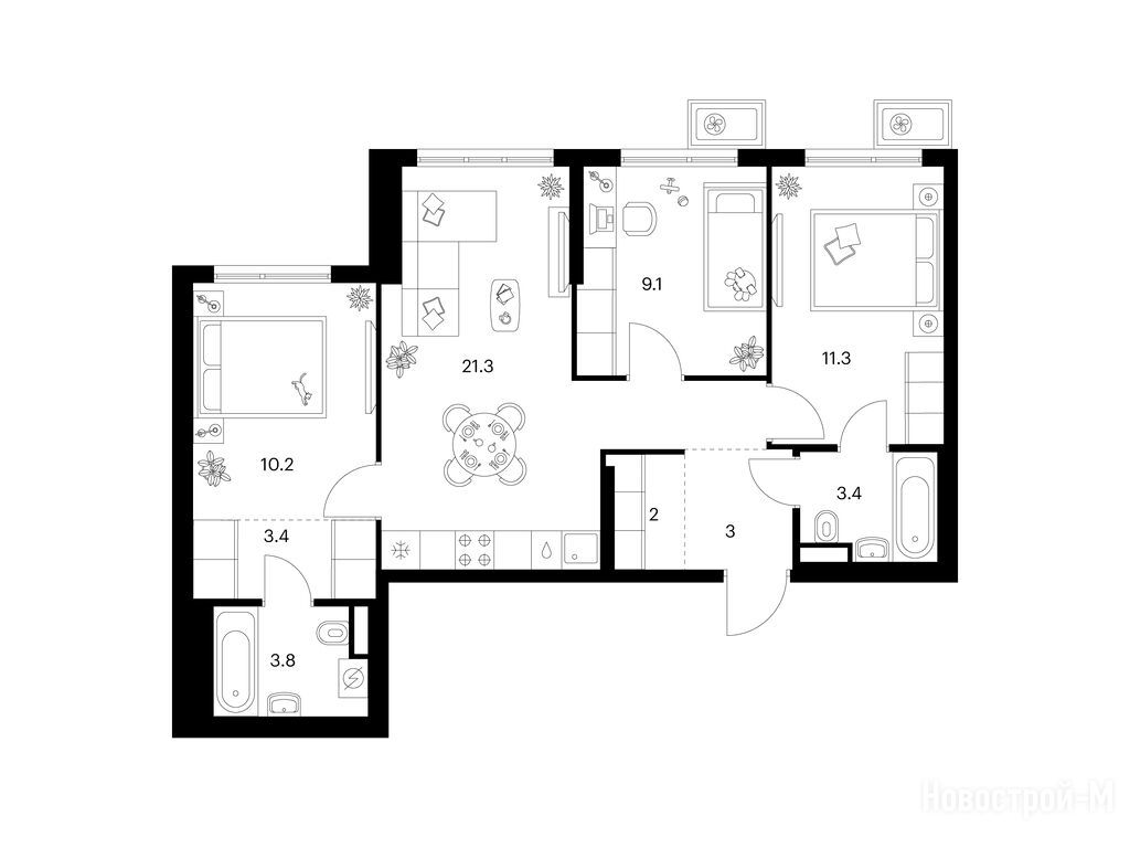 Взяли двушку. Прикольно, что уже на 59 квадратов идут 2 с/у. Сначала смутило, что без балкона, но вообще вместо них кладовые делают. Реально удобно, не надо квартиру хламом нагружать. Поэтому в планах еще кладовку покупать.
