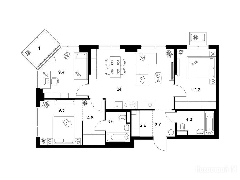Взяли двушку. Прикольно, что уже на 59 квадратов идут 2 с/у. Сначала смутило, что без балкона, но вообще вместо них кладовые делают. Реально удобно, не надо квартиру хламом нагружать. Поэтому в планах еще кладовку покупать.