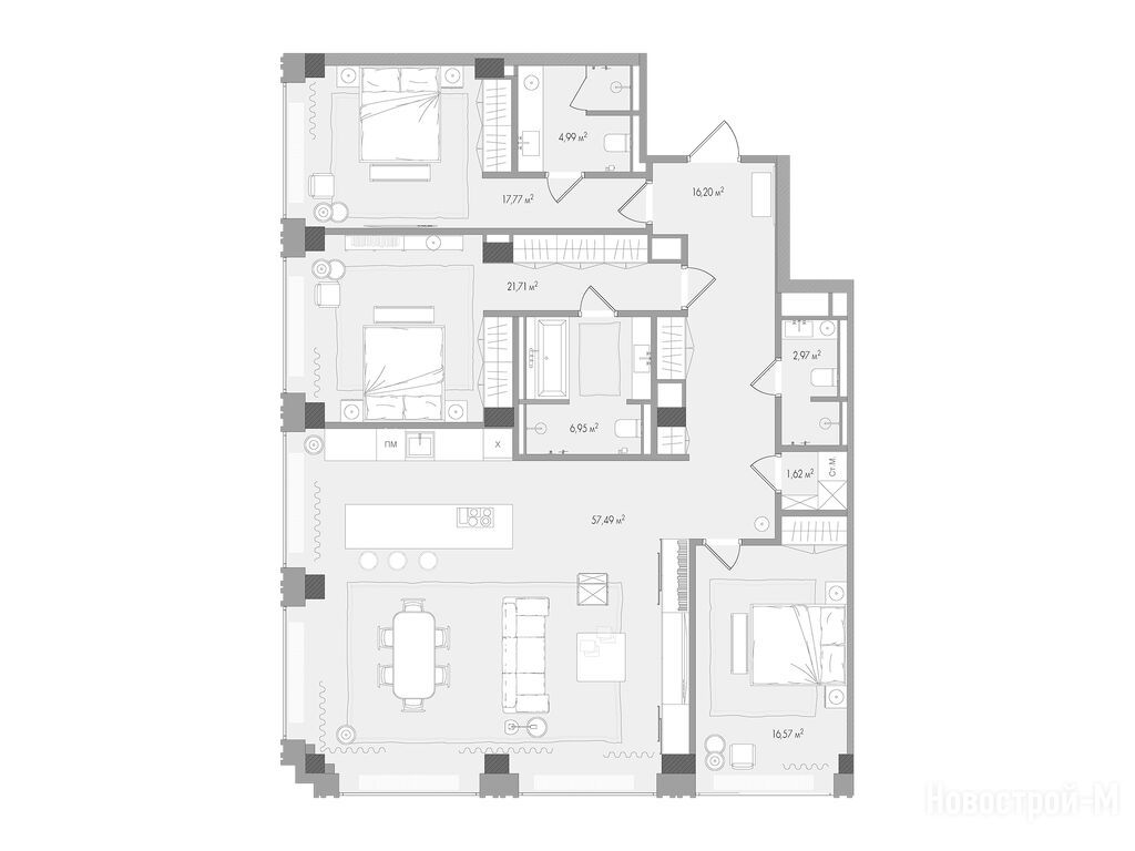 Продается трехкомнатная квартира в новостройке ЖК «Форум» по адресу Москва, ЦАО, Мещанский, ул. Садовая-Сухаревская, вл. 14. Общая площадь квартиры - 148.65 кв. м. Тип проекта, по которому построен дом — Монолитно-кирпичный, компания-застройщик — MR Group (МР Групп). Стоимость квартиры — 318 705 600 руб. Способы оплаты можно уточнить у продавца. Срок сдачи — 1 квартал 2026. Более подробная информация по телефону.