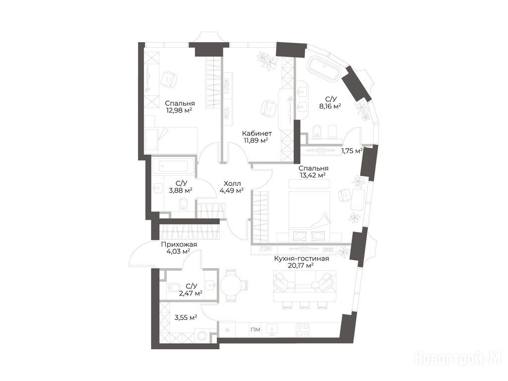 Продается трехкомнатная квартира в новостройке Клубный дом «Гранд Фили» по адресу Москва, ЗАО, Филевский Парк, ул. Большая Филевская, уч.2Б. Общая площадь квартиры - 86.8 кв. м. Тип проекта, по которому построен дом — Монолитно-кирпичный, компания-застройщик — АО «СЗ «ГРАНАРД». Стоимость квартиры — 67 210 677 руб. Способы оплаты можно уточнить у продавца. Срок сдачи — 2 квартал 2029. Более подробная информация по телефону.