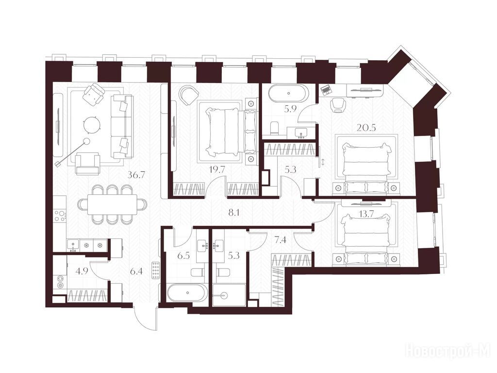 Продается трехкомнатная квартира в новостройке Клубный дом «К7/11» по адресу Москва, ЦАО, Пресненский, ул. Климашкина, д. 7/11. Общая площадь квартиры - 140.8 кв. м. Тип проекта, по которому построен дом — Монолитно-кирпичный, компания-застройщик — MR Group (МР Групп). Стоимость квартиры — 310 745 600 руб. Способы оплаты можно уточнить у продавца. Срок сдачи — 4 квартал 2028. Более подробная информация по телефону.
