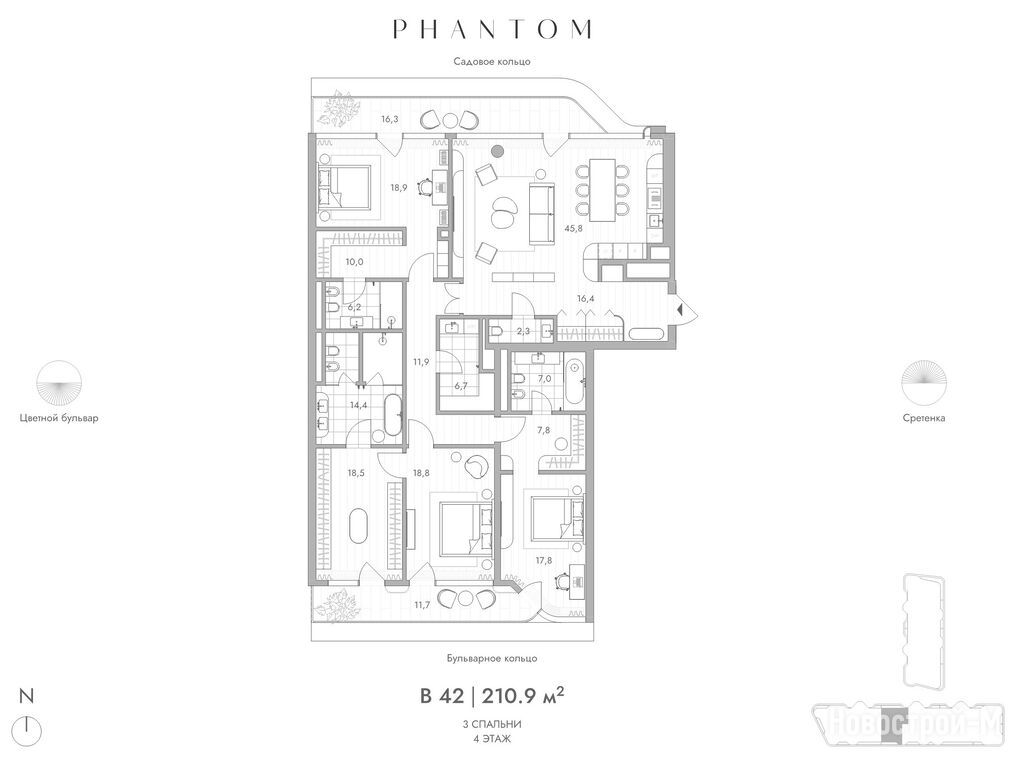 Продается трехкомнатная квартира в новостройке Клубный дом Phantom (Фантом) по адресу Москва, ЦАО, Мещанский, Малая Сухаревская пл., вл. 6, стр. 2, 3, 4, 8. Общая площадь квартиры - 210.9 кв. м. Тип проекта, по которому построен дом — Монолитно-кирпичный, компания-застройщик — Sense Development. Стоимость квартиры — 432 345 000 руб. Способы оплаты можно уточнить у продавца. Срок сдачи — 3 квартал 2027. Более подробная информация по телефону.