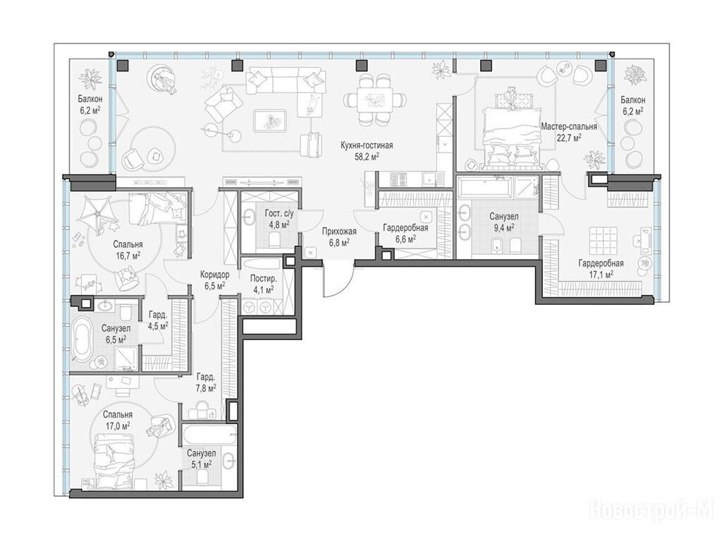 Продается трехкомнатная квартира в новостройке Клубный квартал «Фрунзенская набережная» по адресу Москва, ЦАО, Хамовники, Фрунзенская набережная, 30. Общая площадь квартиры - 197.6 кв. м. Тип проекта, по которому построен дом — Монолит, компания-застройщик — Sminex. Стоимость квартиры — 600 280 000 руб. Способы оплаты можно уточнить у продавца. Срок сдачи — 3 квартал 2027. Более подробная информация по телефону.
