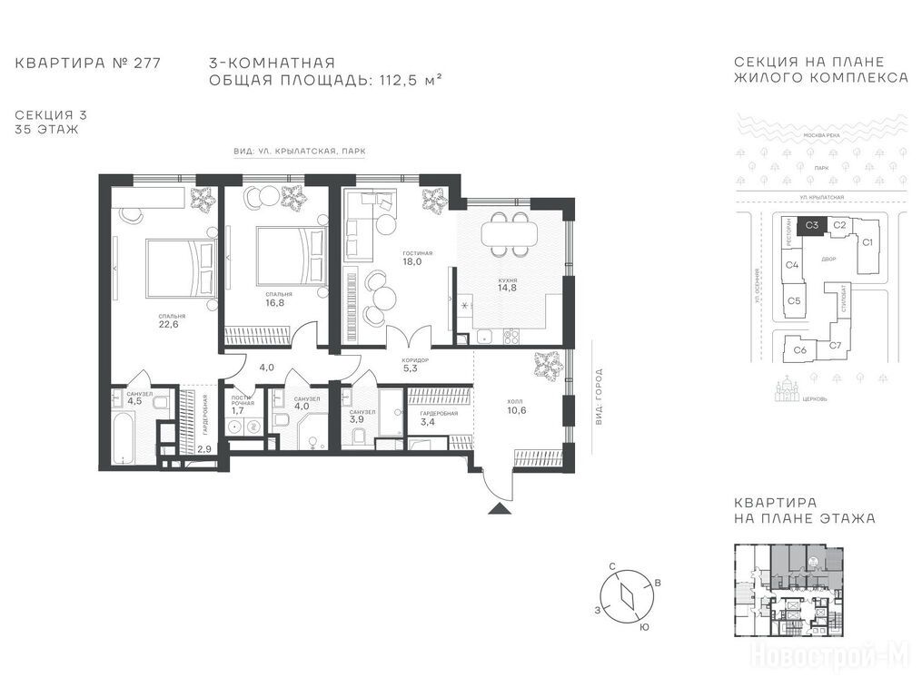 Приемлемые цены для такой локации, как инвестиции очень даже прибыльно будет. До метро меньше 20 минут прогулочным шагом. Квартиры сдаются с чистовой дизайнерской отделкой от знаменитого бюро Александры Федоровой. Паркинг рассчитан на 271 машино-место, есть станции для зарядки электромобилей. Вся инфраструктура своя, так что одни плюсы