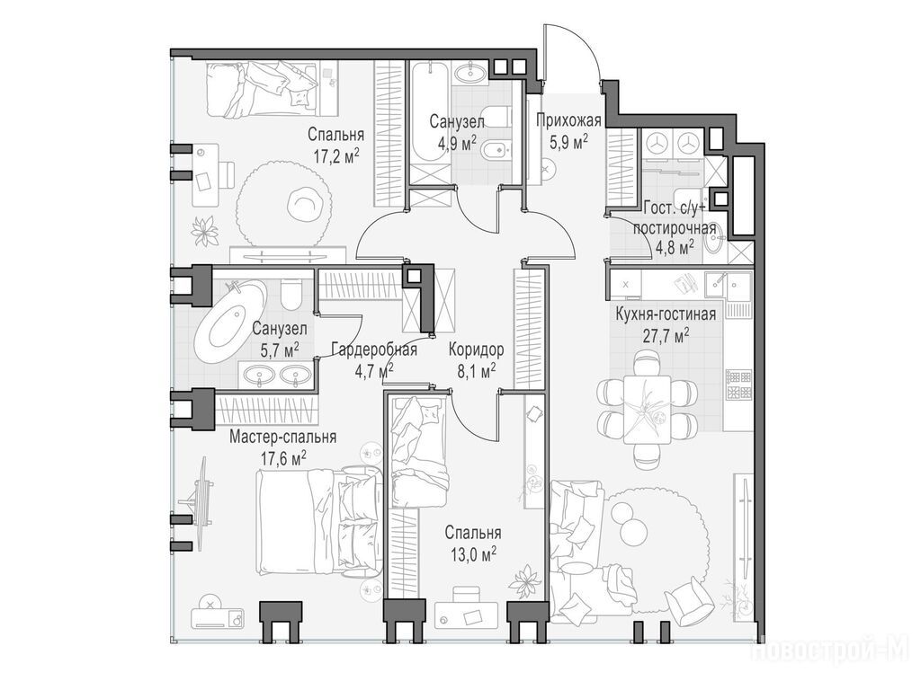 Продается трехкомнатная квартира в новостройке Квартал Life Time (Лайф Тайм) по адресу Москва, ЦАО, Пресненский, ул. Сергея Макеева, 11/9. Общая площадь квартиры - 110.2 кв. м. Тип проекта, по которому построен дом — Монолит, компания-застройщик — Sminex (Смайнекс). Стоимость квартиры — 169 480 000 руб. Способы оплаты можно уточнить у продавца. Срок сдачи — 2 квартал 2026. Более подробная информация по телефону.