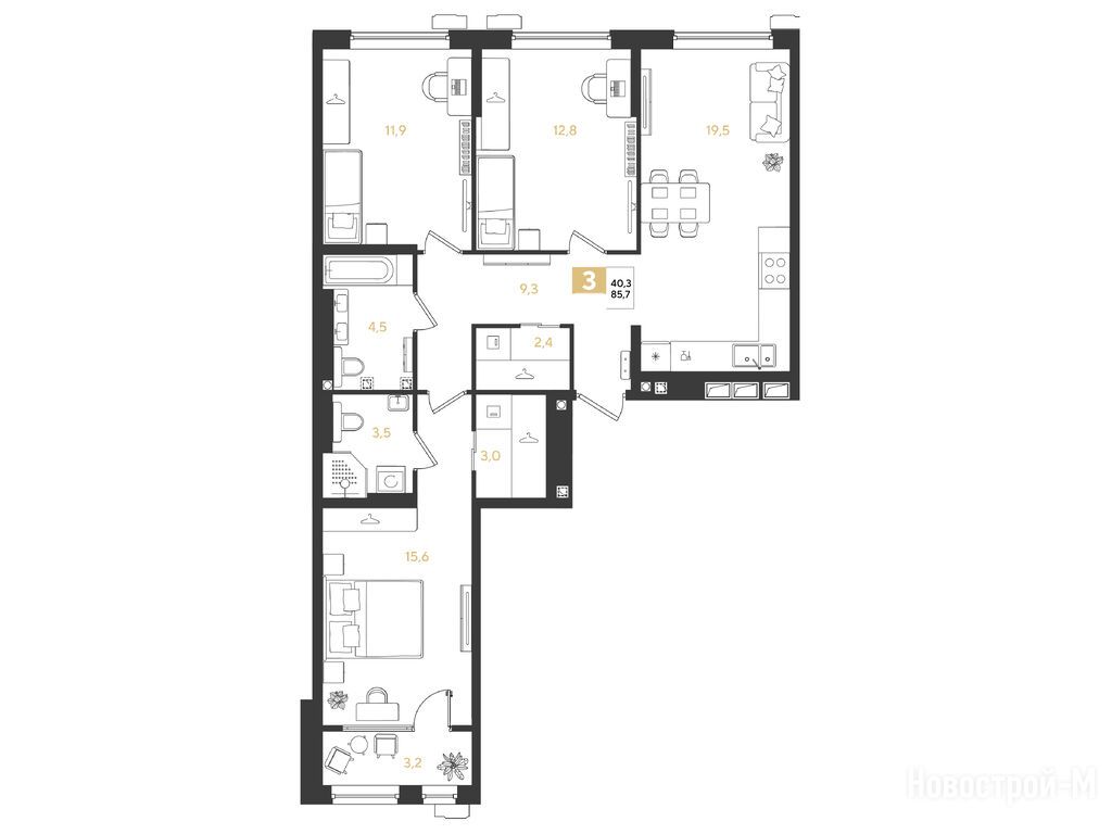 Продается трехкомнатная квартира в новостройке Квартал «Самолет 7» по адресу Краснодарский край, Краснодар, ул. Западный обход, корп. 1.1. Общая площадь квартиры - 85.7 кв. м. Тип проекта, по которому построен дом — Монолитно-кирпичный, компания-застройщик — DOGMA, ООО СЗ Догма-5. Стоимость квартиры — 15 048 920 руб. Способы оплаты можно уточнить у продавца. Срок сдачи — 2 квартал 2028. Более подробная информация по телефону.