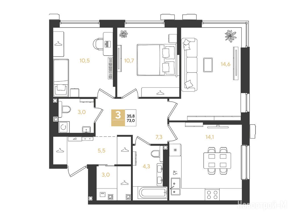Продается трехкомнатная квартира в новостройке Квартал «Самолет 7» по адресу Краснодарский край, Краснодар, ул. Западный обход, корп. 1.1. Общая площадь квартиры - 73 кв. м. Тип проекта, по которому построен дом — Монолитно-кирпичный, компания-застройщик — DOGMA, ООО СЗ Догма-5. Стоимость квартиры — 13 088 900 руб. Способы оплаты можно уточнить у продавца. Срок сдачи — 2 квартал 2028. Более подробная информация по телефону.