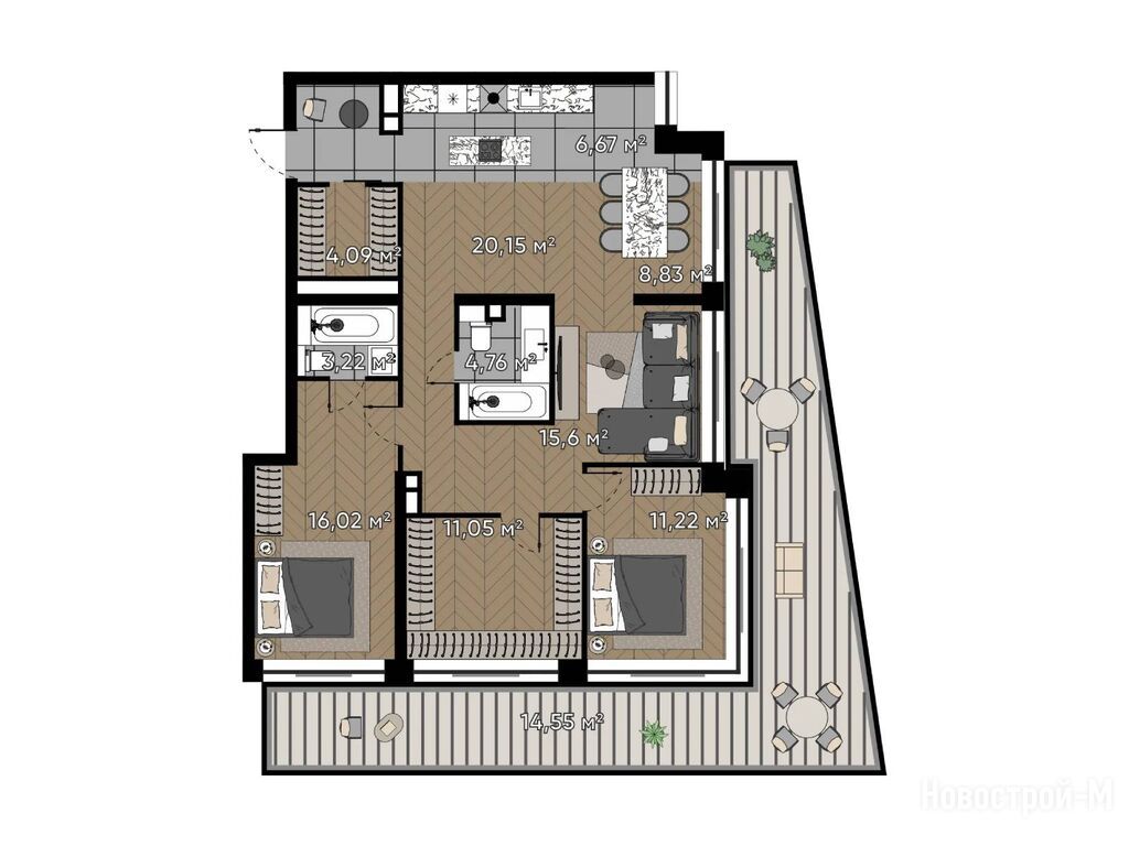 Продается трехкомнатная квартира в новостройке Квартал «Серебряный бор» по адресу Москва, СЗАО, Хорошево-Мневники, ул. Берзарина, д. 37. Общая площадь квартиры - 116.16 кв. м. Тип проекта, по которому построен дом — Монолитно-кирпичный, компания-застройщик — St Michael. Стоимость квартиры — 97 354 857 руб. Способы оплаты можно уточнить у продавца. Срок сдачи — 2 квартал 2027. Более подробная информация по телефону.