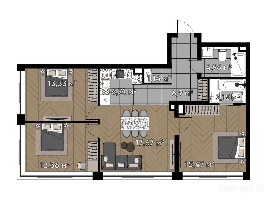 Продается трехкомнатная квартира в новостройке Квартал «Серебряный бор» по адресу Москва, СЗАО, Хорошево-Мневники, ул. Берзарина, д. 37. Общая площадь квартиры - 81.72 кв. м. Тип проекта, по которому построен дом — Монолитно-кирпичный, компания-застройщик — St Michael. Стоимость квартиры — 50 310 918 руб. Способы оплаты можно уточнить у продавца. Срок сдачи — 2 квартал 2027. Более подробная информация по телефону.