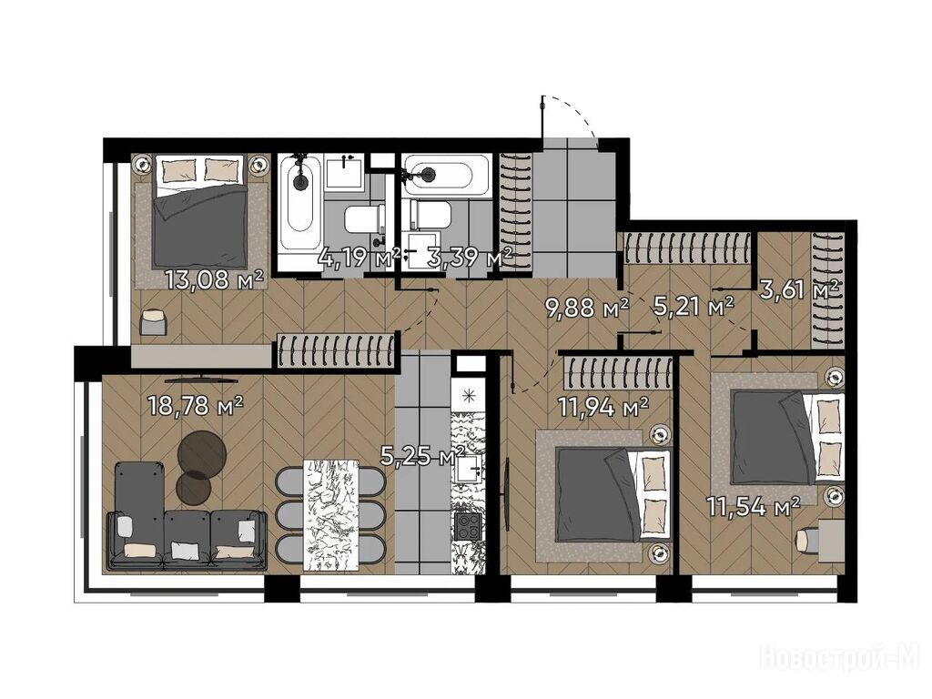 Продается трехкомнатная квартира в новостройке Квартал «Серебряный бор» по адресу Москва, СЗАО, Хорошево-Мневники, ул. Берзарина, д. 37. Общая площадь квартиры - 86.87 кв. м. Тип проекта, по которому построен дом — Монолитно-кирпичный, компания-застройщик — St Michael. Стоимость квартиры — 57 473 772 руб. Способы оплаты можно уточнить у продавца. Срок сдачи — 2 квартал 2027. Более подробная информация по телефону.