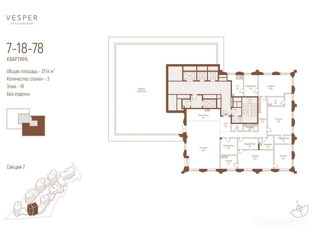 Продается трехкомнатная квартира в новостройке Квартал Vesper Кутузовский (Веспер Кутузовский) по адресу Москва, ЗАО, Дорогомилово, пр-кт Кутузовский, вл. 12. Общая площадь квартиры - 371.4 кв. м. Тип проекта, по которому построен дом — Монолит, компания-застройщик — ООО СЗ ДИВИНУС ИММОБИЛА, Vesper (Веспер). Стоимость квартиры — 1 304 876 760 руб. Способы оплаты можно уточнить у продавца. Срок сдачи — 1 квартал 2028. Более подробная информация по телефону.