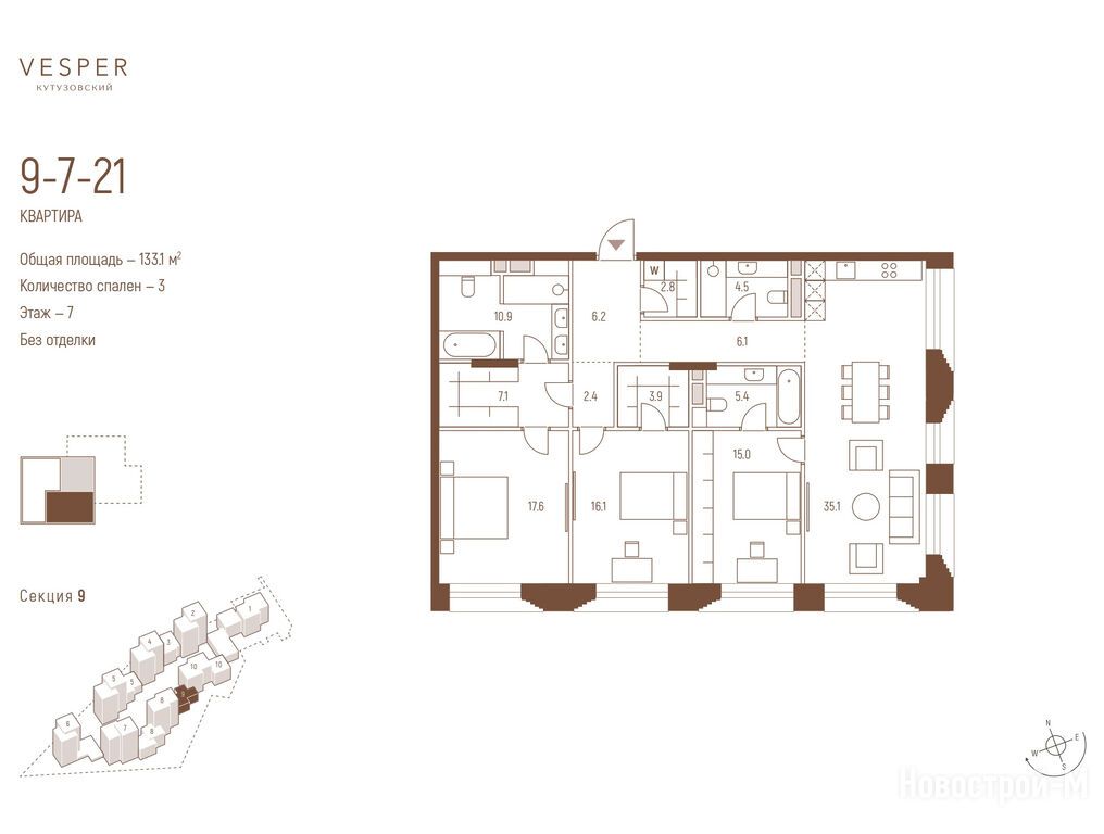 Продается трехкомнатная квартира в новостройке Квартал Vesper Кутузовский (Веспер Кутузовский) по адресу Москва, ЗАО, Дорогомилово, пр-кт Кутузовский, вл. 12. Общая площадь квартиры - 133.1 кв. м. Тип проекта, по которому построен дом — Монолит, компания-застройщик — ООО СЗ ДИВИНУС ИММОБИЛА, Vesper (Веспер). Стоимость квартиры — 199 250 700 руб. Способы оплаты можно уточнить у продавца. Срок сдачи — 1 квартал 2028. Более подробная информация по телефону.