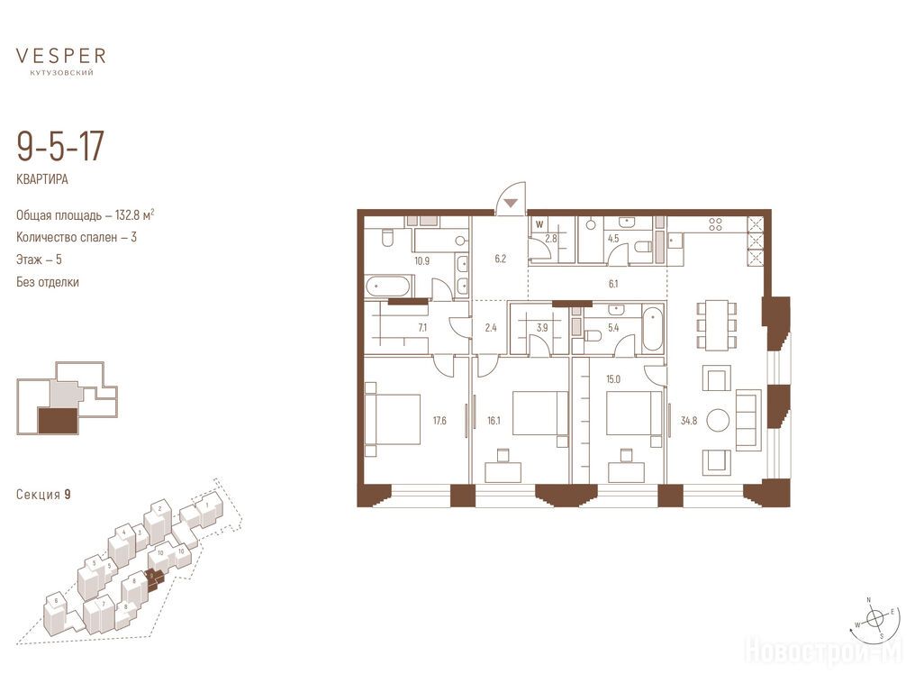 Продается трехкомнатная квартира в новостройке Квартал Vesper Кутузовский (Веспер Кутузовский) по адресу Москва, ЗАО, Дорогомилово, пр-кт Кутузовский, вл. 12. Общая площадь квартиры - 132.8 кв. м. Тип проекта, по которому построен дом — Монолит, компания-застройщик — ООО СЗ ДИВИНУС ИММОБИЛА, Vesper (Веспер). Стоимость квартиры — 180 608 000 руб. Способы оплаты можно уточнить у продавца. Срок сдачи — 1 квартал 2028. Более подробная информация по телефону.
