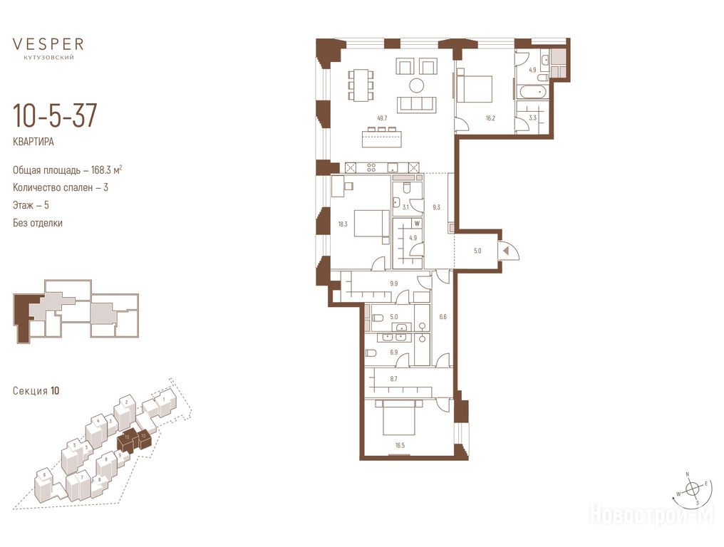 Продается трехкомнатная квартира в новостройке Квартал Vesper Кутузовский (Веспер Кутузовский) по адресу Москва, ЗАО, Дорогомилово, пр-кт Кутузовский, вл. 12. Общая площадь квартиры - 168.3 кв. м. Тип проекта, по которому построен дом — Монолит, компания-застройщик — ООО СЗ ДИВИНУС ИММОБИЛА, Vesper (Веспер). Стоимость квартиры — 244 876 500 руб. Способы оплаты можно уточнить у продавца. Срок сдачи — 1 квартал 2028. Более подробная информация по телефону.