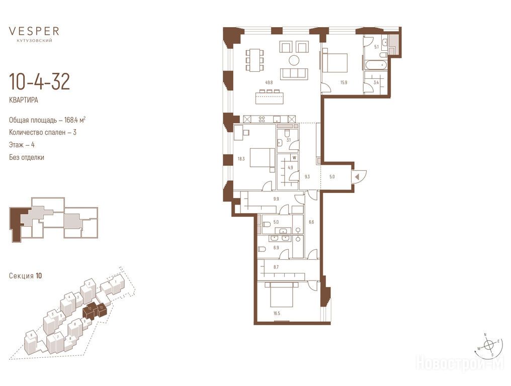 Продается трехкомнатная квартира в новостройке Квартал Vesper Кутузовский (Веспер Кутузовский) по адресу Москва, ЗАО, Дорогомилово, пр-кт Кутузовский, вл. 12. Общая площадь квартиры - 168.4 кв. м. Тип проекта, по которому построен дом — Монолит, компания-застройщик — ООО СЗ ДИВИНУС ИММОБИЛА, Vesper (Веспер). Стоимость квартиры — 225 925 440 руб. Способы оплаты можно уточнить у продавца. Срок сдачи — 1 квартал 2028. Более подробная информация по телефону.