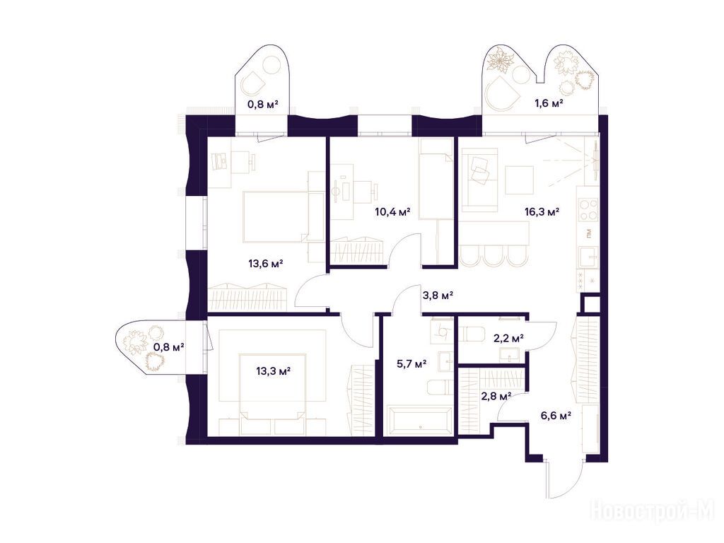 Продается трехкомнатная квартира в новостройке Квартал здоровой жизни «СОЮЗ» по адресу Москва, СВАО, Ростокино, ул. Сельскохозяйственная, вл. 26, корп. 5. Общая площадь квартиры - 77.9 кв. м. Тип проекта, по которому построен дом — Монолитно-кирпичный, компания-застройщик — ГРУППА РОДИНА, СЗ «ИСКРА». Стоимость квартиры — 70 380 110 руб. Способы оплаты можно уточнить у продавца. Срок сдачи — 1 квартал 2026. Более подробная информация по телефону.