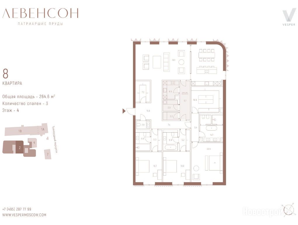 Продается трехкомнатная квартира в новостройке Levenson (Левенсон) по адресу Москва, ЦАО, Тверской, Трехпрудный пер., д. 9/1. Общая площадь квартиры - 264.6 кв. м. Тип проекта, по которому построен дом — Монолитно-кирпичный,Кирпичный, компания-застройщик — ООО СЗ ТРЕХПРУДНЫЙ, Vesper (Веспер). Стоимость квартиры — 846 720 000 руб. Способы оплаты можно уточнить у продавца. Срок сдачи — 3 квартал 2027. Более подробная информация по телефону.
