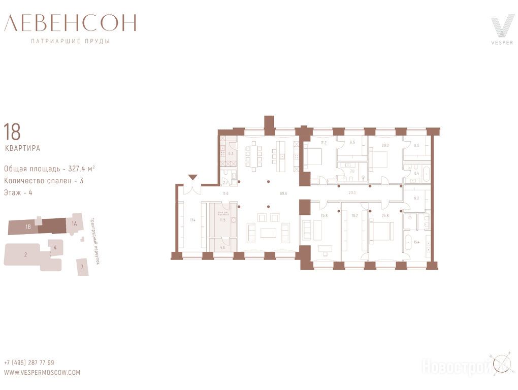 Продается трехкомнатная квартира в новостройке Levenson (Левенсон) по адресу Москва, ЦАО, Тверской, Трехпрудный пер., д. 9/1. Общая площадь квартиры - 327.4 кв. м. Тип проекта, по которому построен дом — Монолитно-кирпичный,Кирпичный, компания-застройщик — ООО СЗ ТРЕХПРУДНЫЙ, Vesper (Веспер). Стоимость квартиры — 1 145 900 000 руб. Способы оплаты можно уточнить у продавца. Срок сдачи — 3 квартал 2027. Более подробная информация по телефону.
