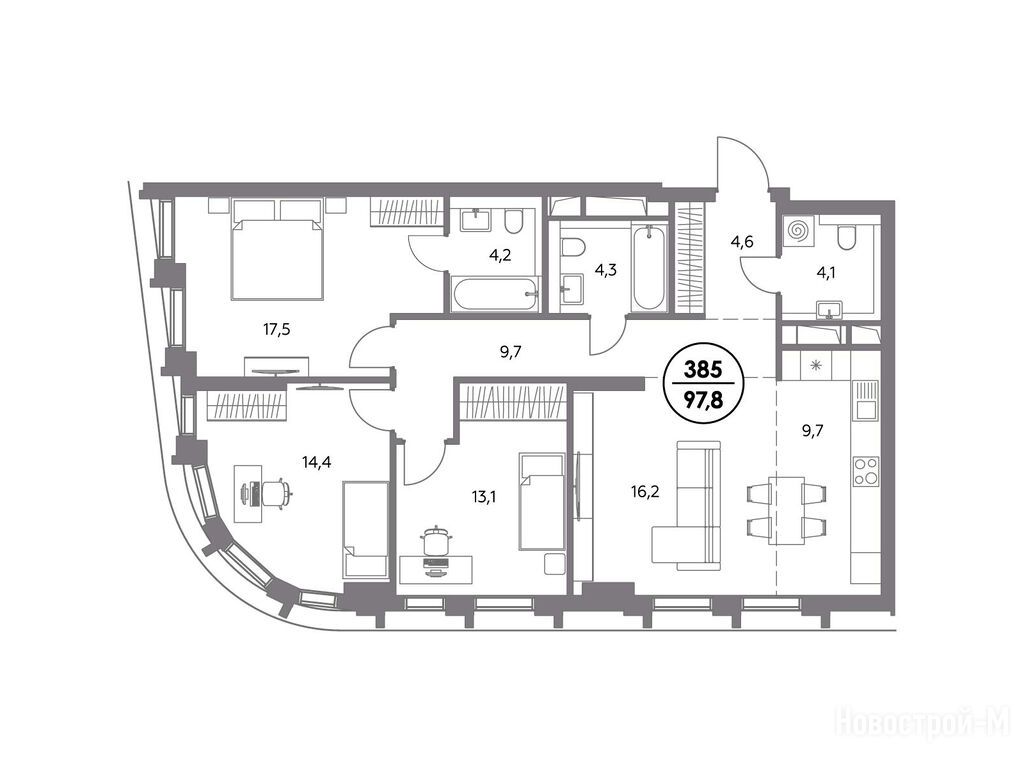 Продается трехкомнатная квартира в новостройке Премиум-квартал «Дом 56» по адресу Москва, ЦАО, Басманный, ул. Фридриха Энгельса, 56, корп. 3. Общая площадь квартиры - 97.8 кв. м. Тип проекта, по которому построен дом — Монолитно-кирпичный, компания-застройщик — ГК «Галс-Девелопмент». Стоимость квартиры — 57 752 000 руб. Способы оплаты можно уточнить у продавца. Срок сдачи — 4 квартал 2026. Более подробная информация по телефону.