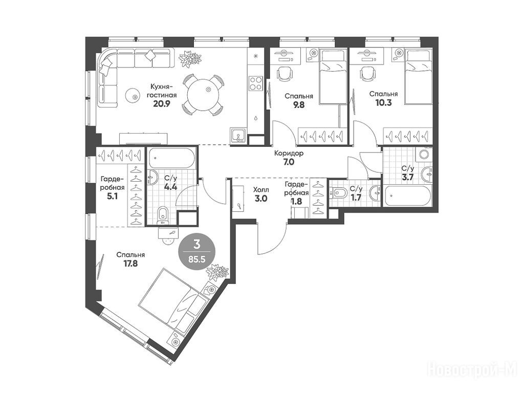 Продается трехкомнатная квартира в новостройке Sokolinn Park (Соколинн Парк) по адресу Москва, ВАО, Богородское, 3-я Гражданская, вл. 1, корп. 1. Общая площадь квартиры - 85.5 кв. м. Тип проекта, по которому построен дом — Монолитно-кирпичный, компания-застройщик — Группа «Эталон». Стоимость квартиры — 39 056 202 руб. Способы оплаты можно уточнить у продавца. Срок сдачи — 2 квартал 2028. Более подробная информация по телефону.