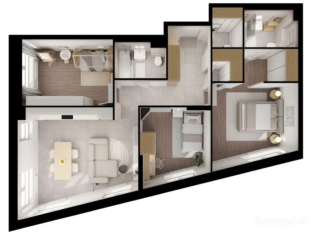 Серия плюс удивила, сами дома со стороны поинтереснее выглядят и планировки нетипичные. Не думала, что захочу квартиру с трапециевидными комнатами, но прикинула некоторые нюансы дизайна и расстановки мебели и решила, что почему бы и нет. В трешке, которую выбрали c мужем, полно приятных моментов по типу двух кладовых, мастер-спальни, балкона и 4-х окон в одной только кухне. При этом цена за такую трешку достаточно вменяемая.