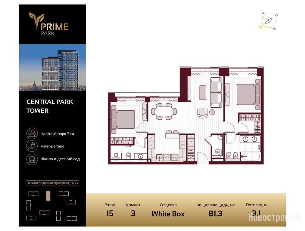 Продается трехкомнатная квартира в новостройке Жилой квартал Prime Park (Прайм Парк) по адресу Москва, САО, Хорошевский, Ленинградский пр-т, 37/7. Общая площадь квартиры - 81.3 кв. м. Тип проекта, по которому построен дом — Монолит, компания-застройщик — Optima Development. Стоимость квартиры — 62 927 955 руб. Способы оплаты можно уточнить у продавца. Более подробная информация по телефону.