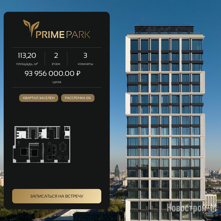 Продается трехкомнатная квартира в новостройке Жилой квартал Prime Park (Прайм Парк) по адресу Москва, САО, Хорошевский, Ленинградский пр-т, 37/8. Общая площадь квартиры - 113.2 кв. м. Тип проекта, по которому построен дом — Монолит, компания-застройщик — Optima Development. Стоимость квартиры — 93 956 000 руб. Способы оплаты можно уточнить у продавца. Срок сдачи — 3 квартал 2027. Более подробная информация по телефону.