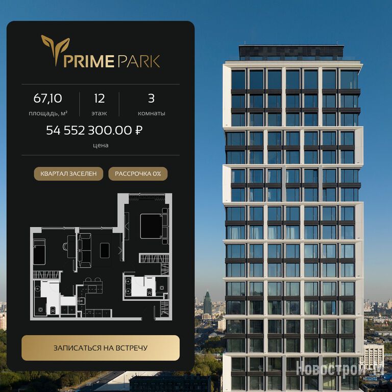 Продается трехкомнатная квартира в новостройке Жилой квартал Prime Park (Прайм Парк) по адресу Москва, САО, Хорошевский, Ленинградский пр-т, 37/8. Общая площадь квартиры - 67.1 кв. м. Тип проекта, по которому построен дом — Монолит, компания-застройщик — Optima Development. Стоимость квартиры — 54 552 300 руб. Способы оплаты можно уточнить у продавца. Срок сдачи — 4 квартал 2026. Более подробная информация по телефону.