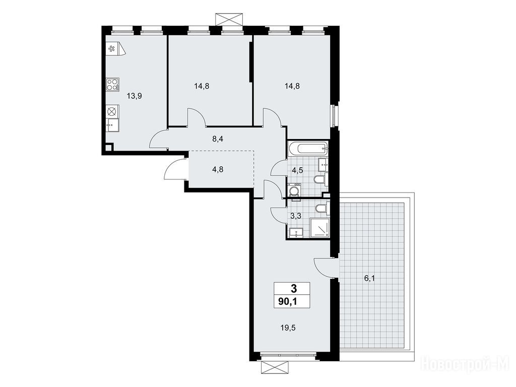Продается трехкомнатная квартира в новостройке Жилой квартал «Прокшино» по адресу Москва, ТиНАО, Новомосковский АО, Сосенское С/П, пос. Коммунарка. Общая площадь квартиры - 90.1 кв. м. Тип проекта, по которому построен дом — Монолит, компания-застройщик — ООО «А101». Стоимость квартиры — 30 253 778 руб. Способы оплаты можно уточнить у продавца. Срок сдачи — 4 квартал 2027. Более подробная информация по телефону.