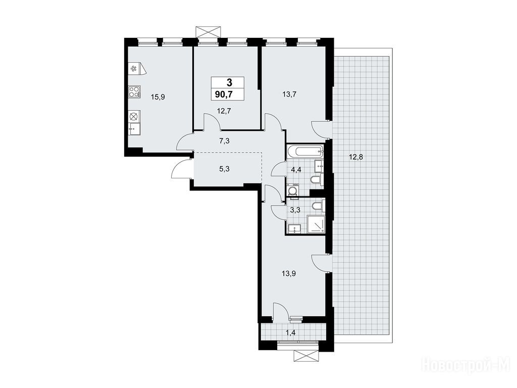 Продается трехкомнатная квартира в новостройке Жилой квартал «Прокшино» по адресу Москва, ТиНАО, Новомосковский АО, Сосенское С/П, пос. Коммунарка. Общая площадь квартиры - 90.7 кв. м. Тип проекта, по которому построен дом — Монолит, компания-застройщик — ООО «А101». Стоимость квартиры — 31 916 423 руб. Способы оплаты можно уточнить у продавца. Срок сдачи — 4 квартал 2027. Более подробная информация по телефону.