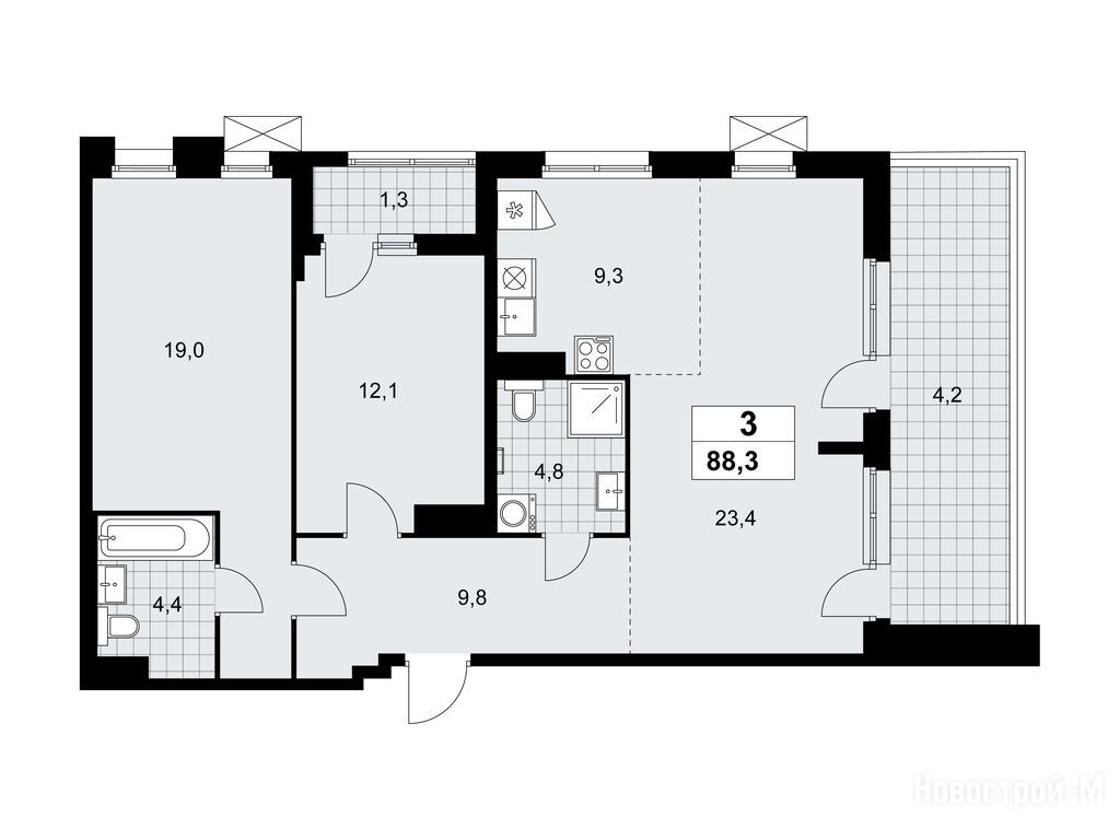 Продается трехкомнатная квартира в новостройке Жилой квартал «Прокшино» по адресу Москва, ТиНАО, Новомосковский АО, Сосенское С/П, пос. Коммунарка. Общая площадь квартиры - 88.3 кв. м. Тип проекта, по которому построен дом — Монолит, компания-застройщик — ООО «А101». Стоимость квартиры — 37 744 895 руб. Способы оплаты можно уточнить у продавца. Срок сдачи — 4 квартал 2027. Более подробная информация по телефону.
