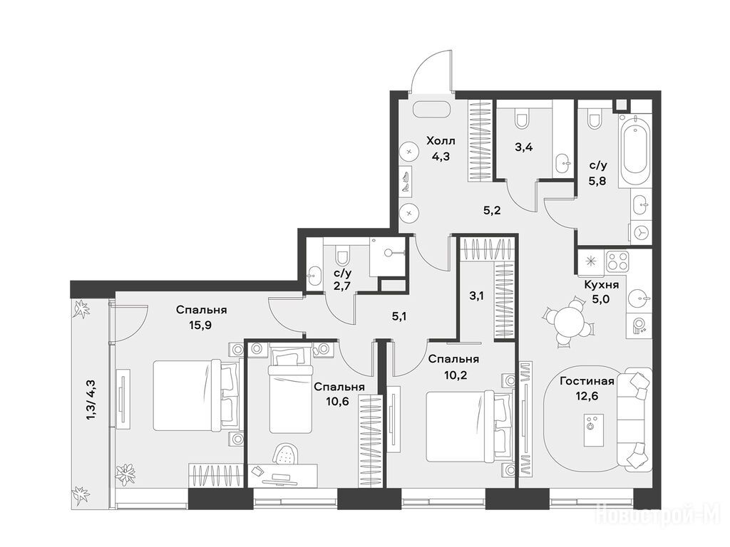 Продается трехкомнатная квартира в новостройке Жилой район «АЛИА» по адресу Москва, СЗАО, Покровское-Стрешнево, Лётная улица, 95Б. Общая площадь квартиры - 85.2 кв. м. Тип проекта, по которому построен дом — Монолит, компания-застройщик — ООО «Специализированный застройщик «Резиденс». Стоимость квартиры — 49 552 320 руб. Способы оплаты можно уточнить у продавца. Срок сдачи — 2 квартал 2028. Более подробная информация по телефону.