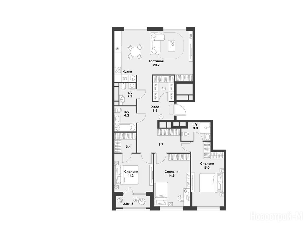Продается трехкомнатная квартира в новостройке Жилой район «АЛИА» по адресу Москва, СЗАО, Покровское-Стрешнево, Лётная улица, 95Б. Общая площадь квартиры - 106.4 кв. м. Тип проекта, по которому построен дом — Монолит, компания-застройщик — ООО «Специализированный застройщик «Резиденс». Стоимость квартиры — 76 714 400 руб. Способы оплаты можно уточнить у продавца. Срок сдачи — 1 квартал 2026. Более подробная информация по телефону.