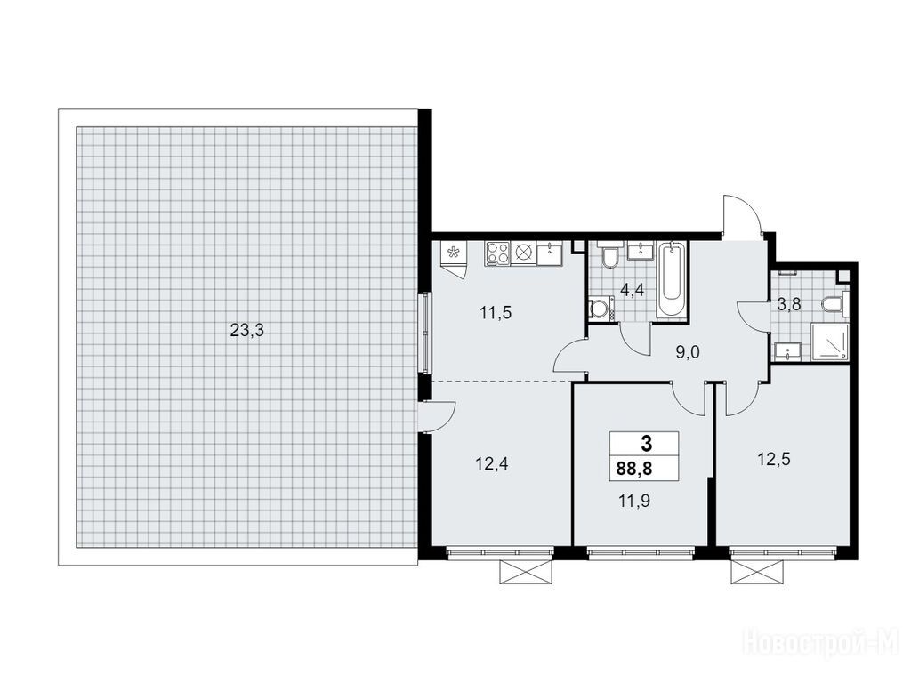 Продается трехкомнатная квартира в новостройке Жилой район «Скандинавия» по адресу Москва, ТиНАО, Новомосковский АО, Сосенское С/П, Коммунарка пос., жилой комплекс Скандинавия, 18.2.5. Общая площадь квартиры - 88.8 кв. м. Тип проекта, по которому построен дом — Монолитно-кирпичный, компания-застройщик — ООО «А101». Стоимость квартиры — 33 813 264 руб. Способы оплаты можно уточнить у продавца. Срок сдачи — 4 квартал 2026. Более подробная информация по телефону.