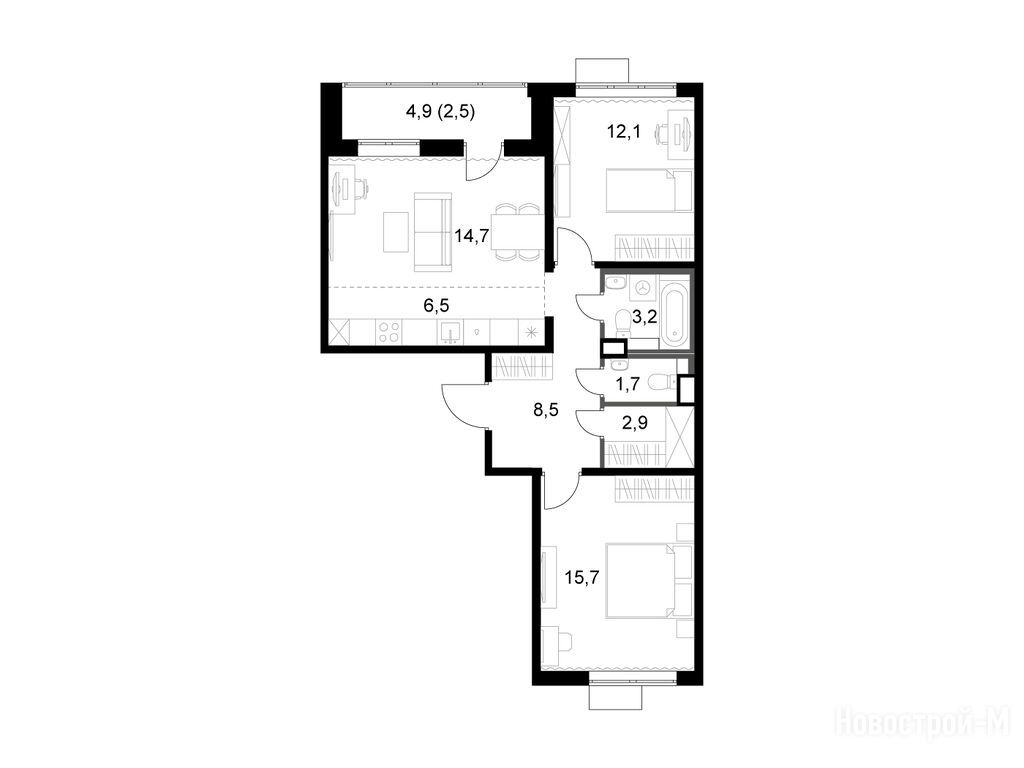 Данная квартира является лидером продаж среди трехкомнатных квартир в ЖК «1-м Химкинском» (Первый Химкинский) по данным Росреестра