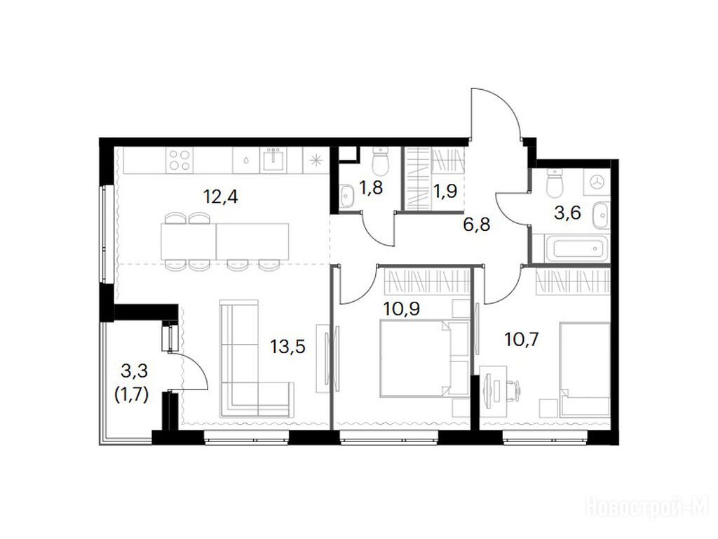 Продается трехкомнатная квартира в новостройке ЖК «1-й Измайловский» (Первый Измайловский) по адресу Москва, ВАО, Гольяново, ул. Монтажная вл. 8/24, корп. 3. Общая площадь квартиры - 63.3 кв. м. Тип проекта, по которому построен дом — Монолитно-панельный, компания-застройщик — ГК ФСК, ДСК-1. Стоимость квартиры — 23 667 870 руб. Способы оплаты можно уточнить у продавца. Срок сдачи — 3 квартал 2028. Более подробная информация по телефону.