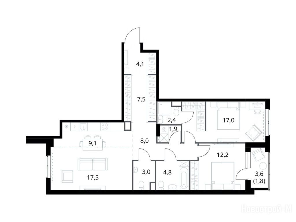 Продается трехкомнатная квартира в новостройке ЖК «1-й Измайловский» (Первый Измайловский) по адресу Москва, ВАО, Гольяново, ул. Монтажная вл. 8/24, корп. 2. Общая площадь квартиры - 89.3 кв. м. Тип проекта, по которому построен дом — Монолитно-панельный, компания-застройщик — ГК ФСК, ДСК-1. Стоимость квартиры — 35 228 850 руб. Способы оплаты можно уточнить у продавца. Срок сдачи — 4 квартал 2026. Более подробная информация по телефону.