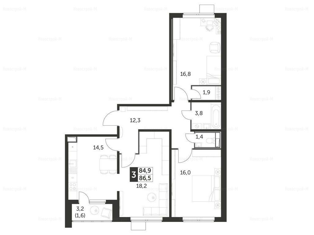 Продается трехкомнатная квартира в новостройке ЖК «1-й Лермонтовский» по адресу Московская область, Люберцы городской округ, Люберцы, Люберцы, жилой комплекс 1-й Лермонтовский, корп. 2.1. Общая площадь квартиры - 86.5 кв. м. Тип проекта, по которому построен дом — Панельный, компания-застройщик — ГК ФСК, ДСК-1. Стоимость квартиры — 17 023 200 руб. Способы оплаты можно уточнить у продавца. Более подробная информация по телефону.