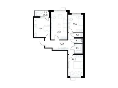 3-комн. квартира 62,60 м2 16 916 242