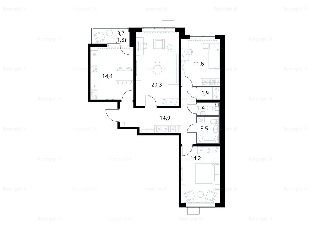 Продается трехкомнатная квартира в новостройке ЖК «1-й Южный» (Первый Южный) по адресу Московская область, Тарычево дер., ул. Фруктовые сады, ЖК «1-й Южный», корп. 1.1. Общая площадь квартиры - 84.1 кв. м. Тип проекта, по которому построен дом — Панельный, компания-застройщик — ДСК-1, ГК ФСК. Стоимость квартиры — 18 198 567 руб. Способы оплаты можно уточнить у продавца. Более подробная информация по телефону.